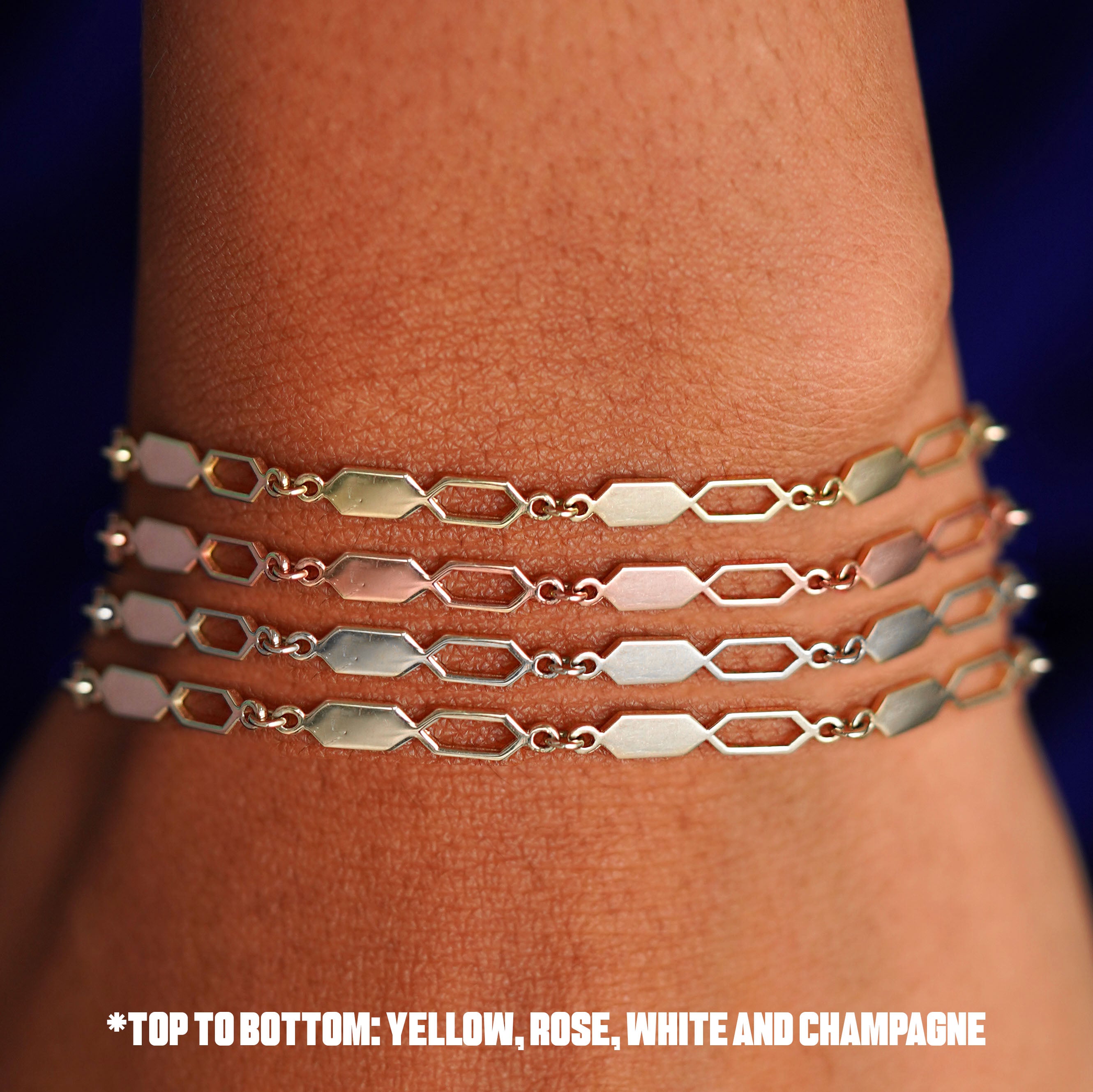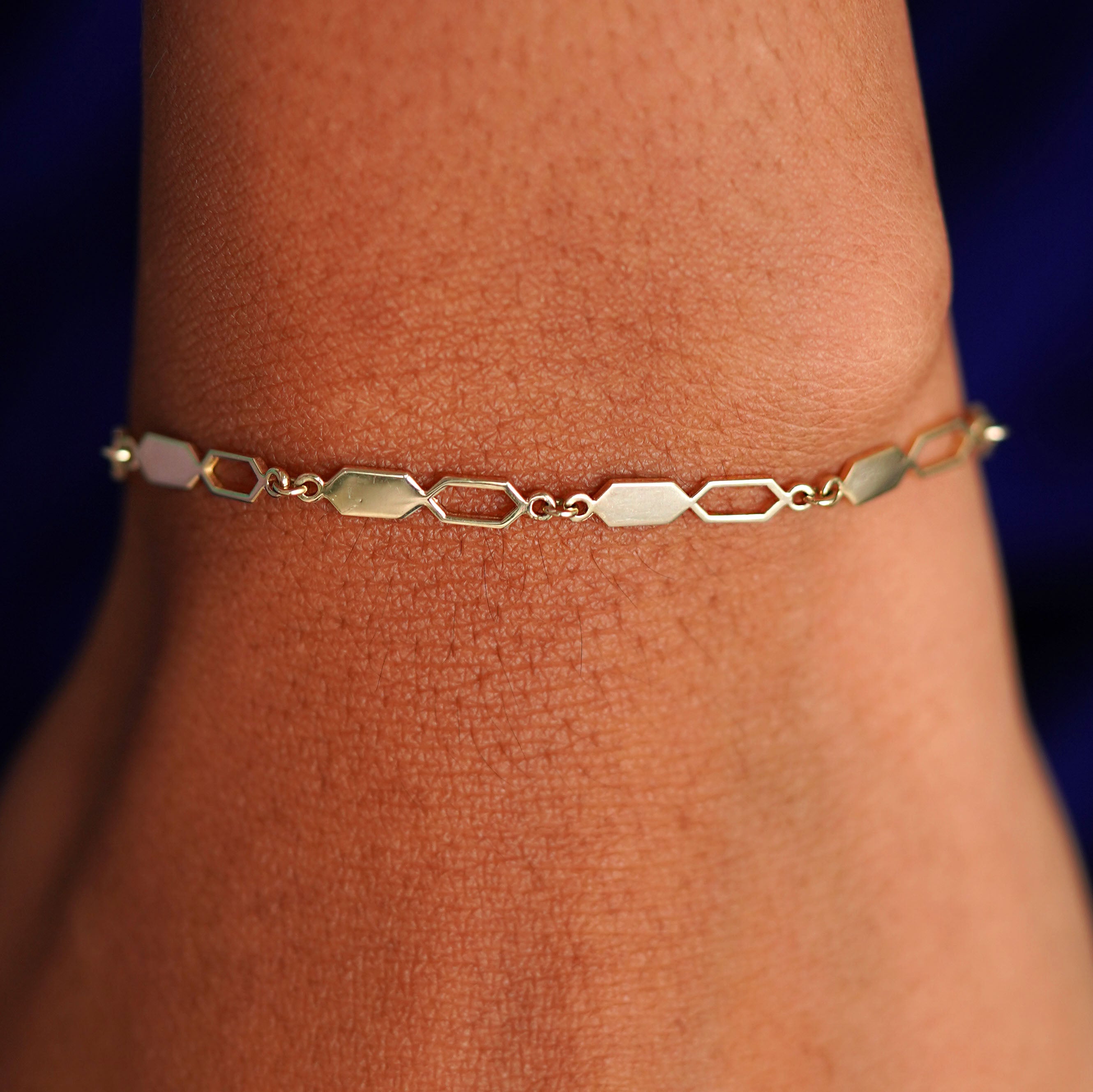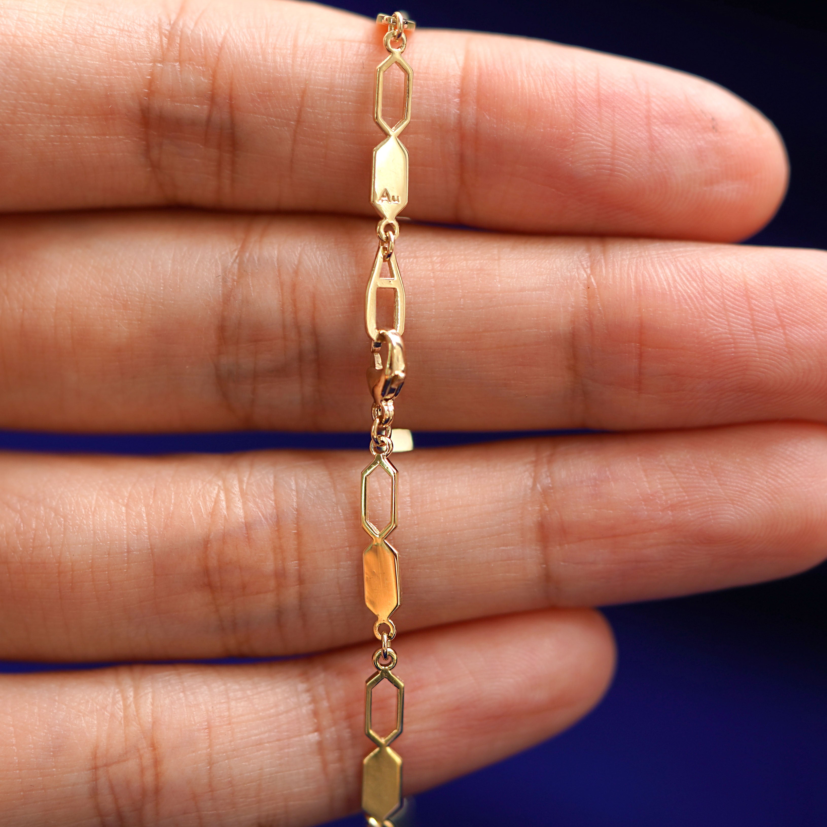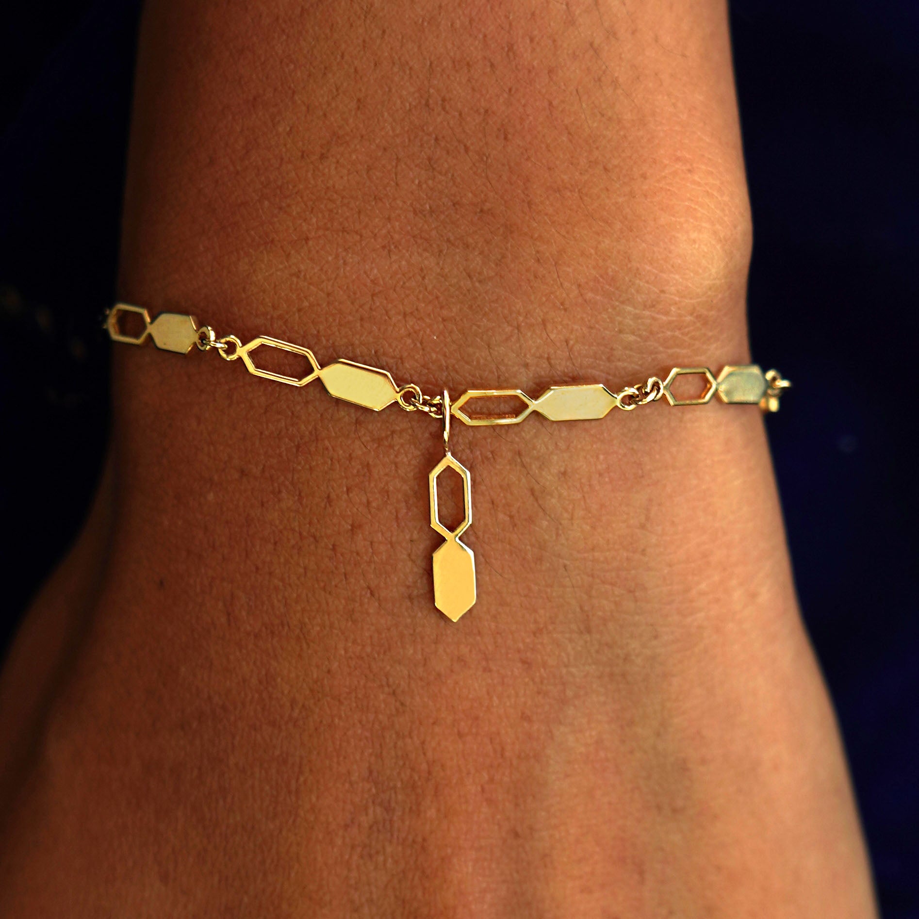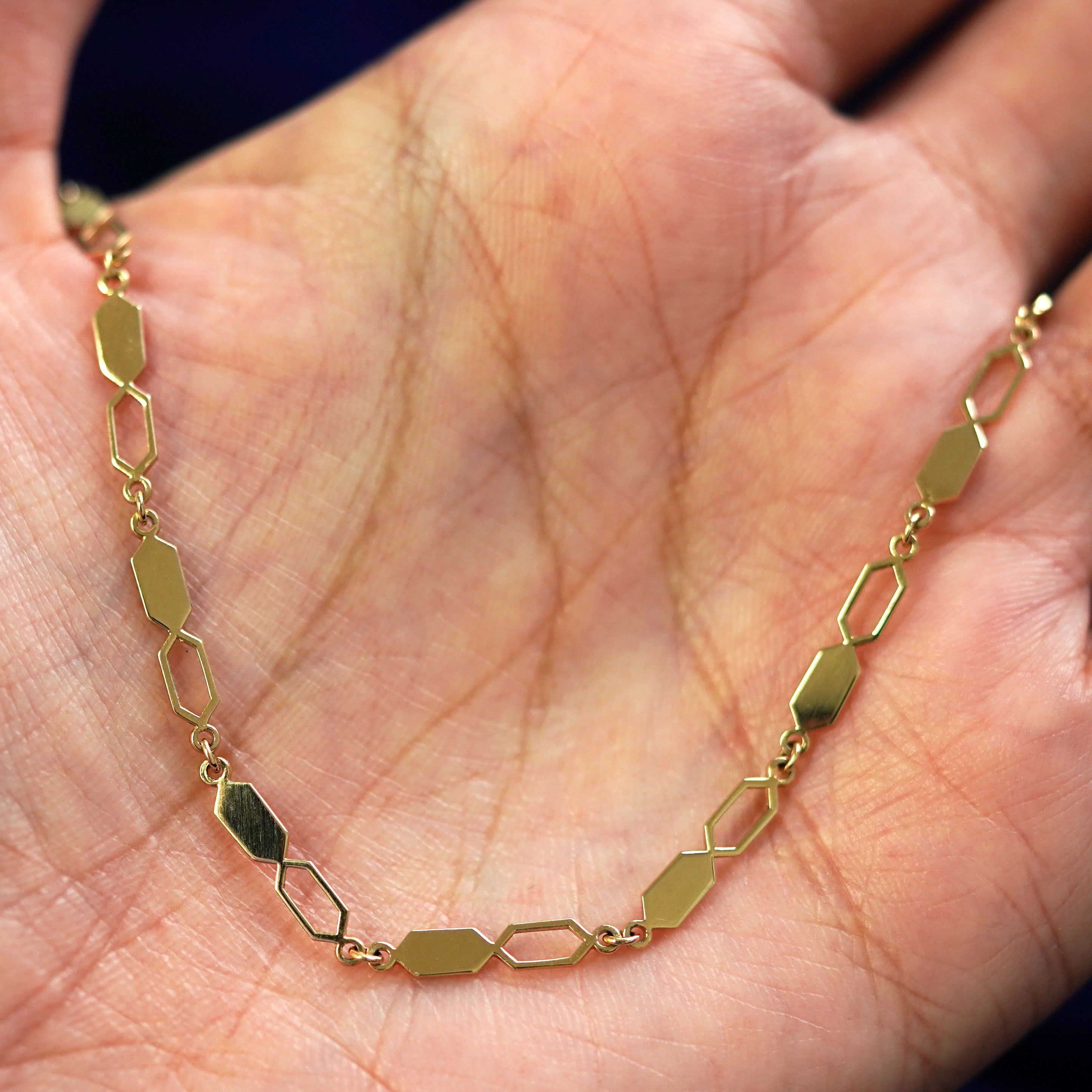 A stunning handmade chain bracelet with a beautiful meaning. This gorgeous 14k solid gold link bracelet is a unique geometric jewelry piece that you can wear anywhere, everywhere, and everyday! Each link is 0.9mm thick.