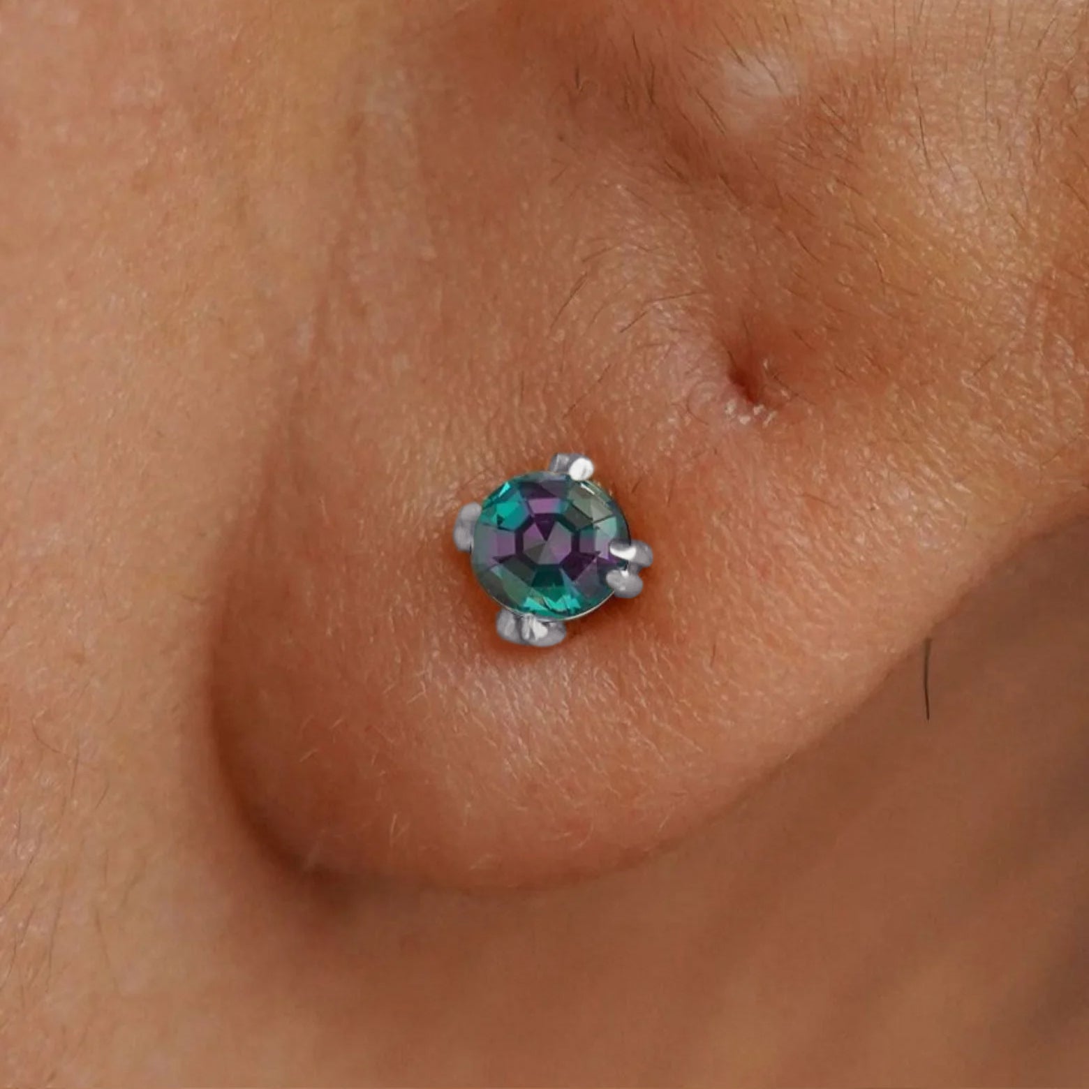 This incredible color changing stone goes from day to night. These alexandrite earrings change color from greenish-blue to purple in different lighting, making them the perfect solid gold pieces for your day and night looks.