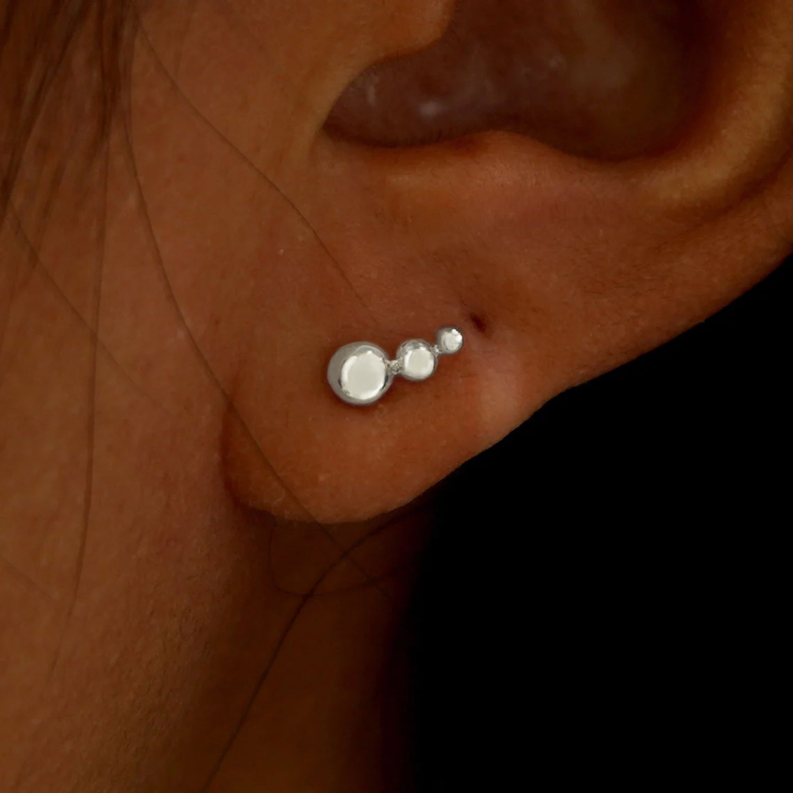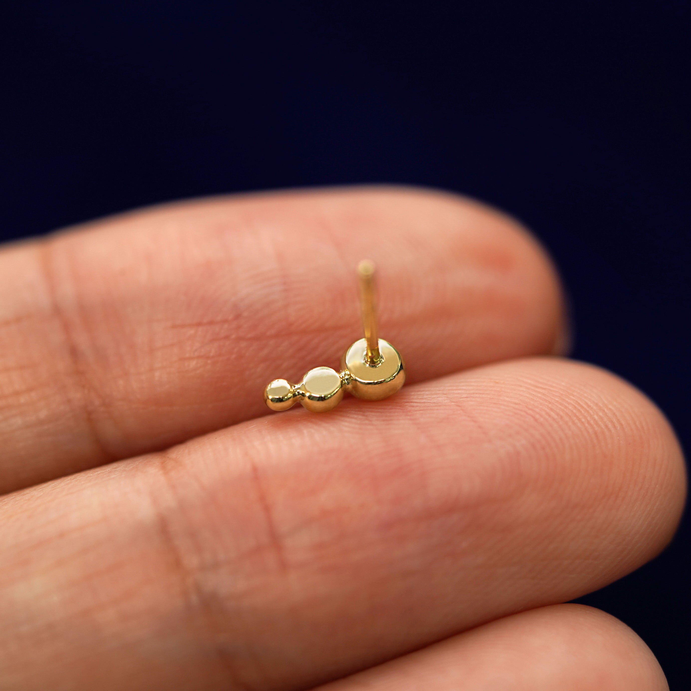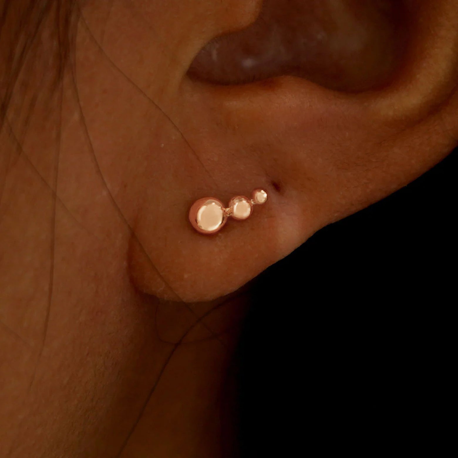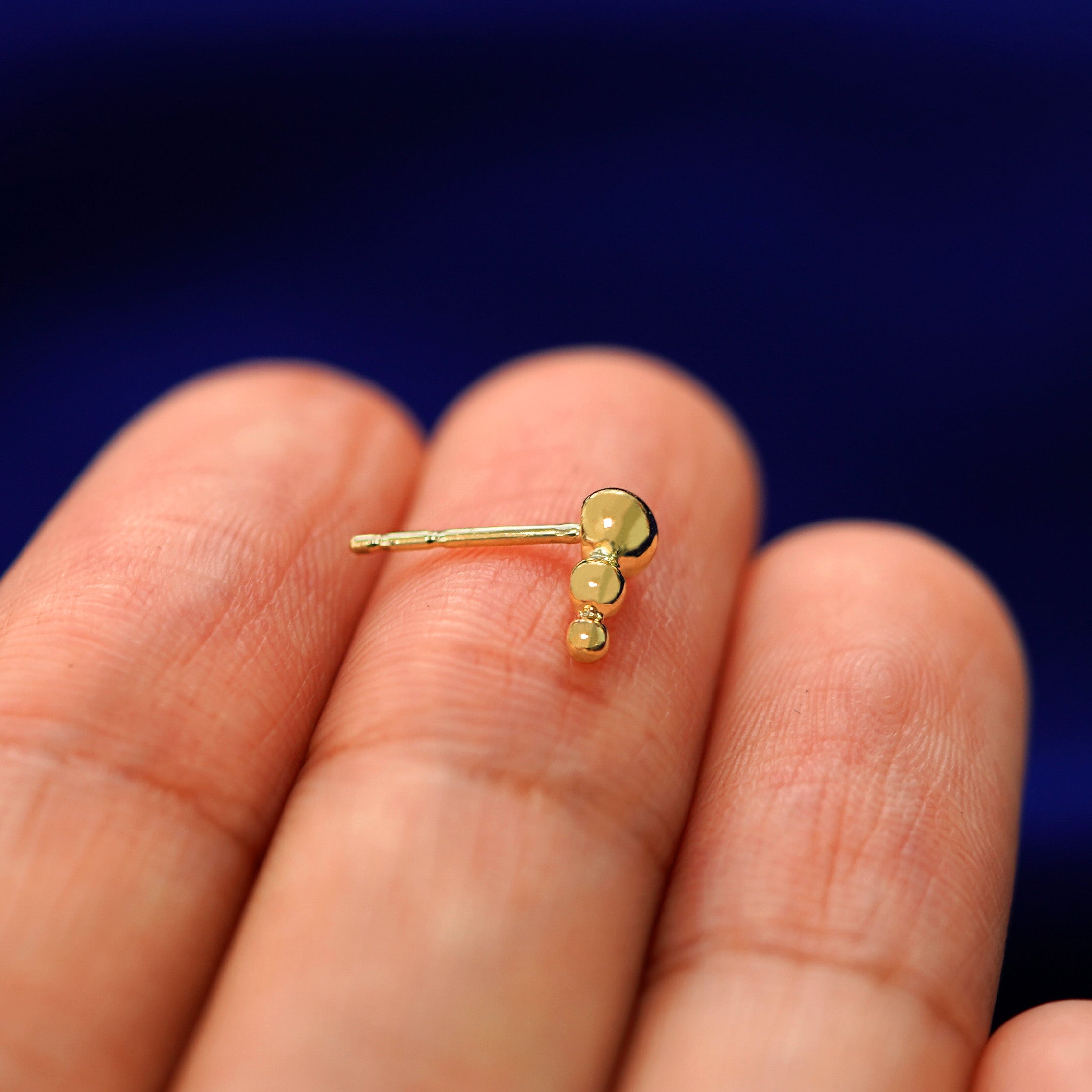 Chic little ear climbers with a stand-out style. These 14k gold stud earrings feature three balls that are graduated in size and are completely solid so they won't dent or break.
