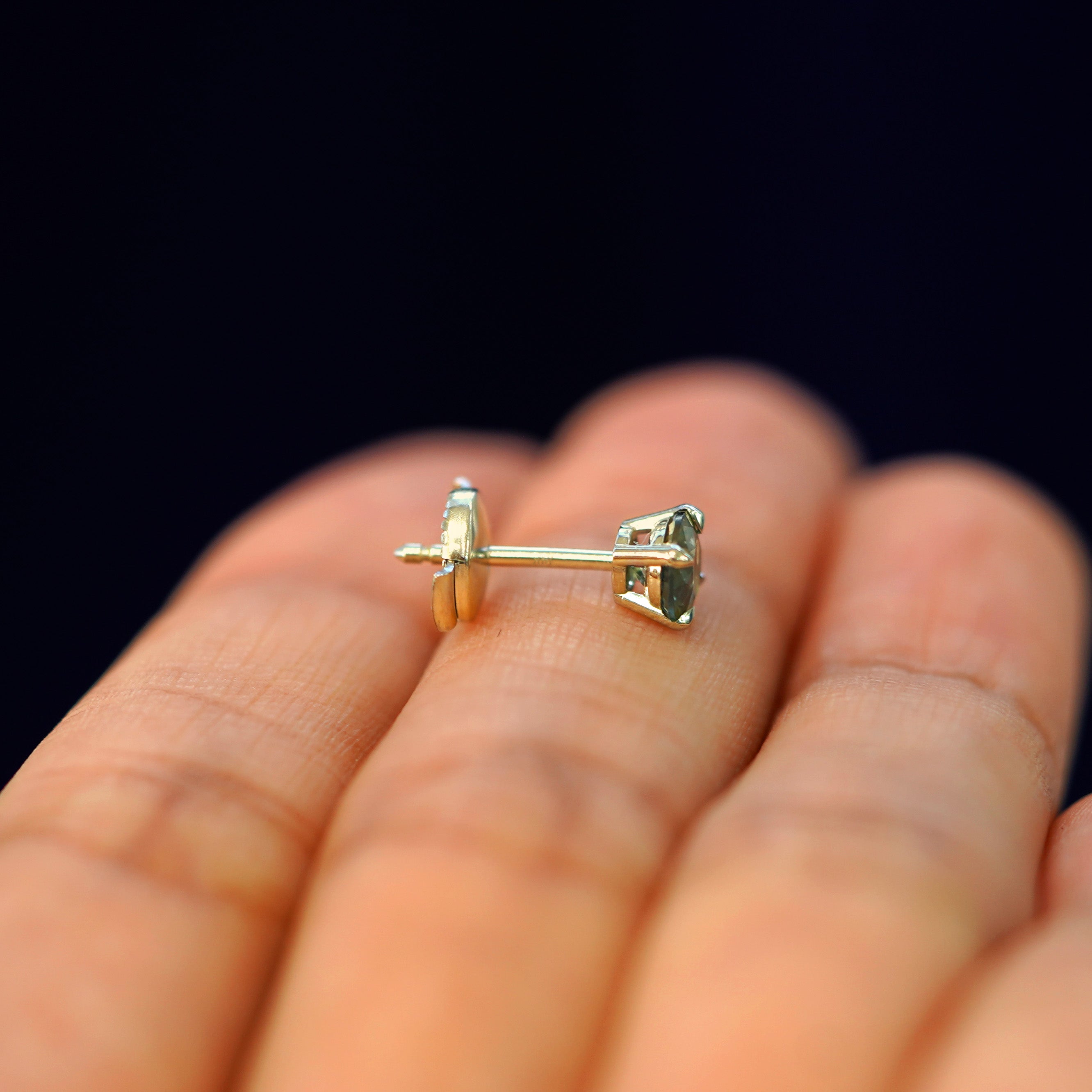 You deserve to make them green with envy. Our 5mm green sapphire stud earrings are the perfect blend of stunning color and strong materials, complete with our large and easy-to-hold pressure lock backings so you’ll always feel secure with these glittering beauties.