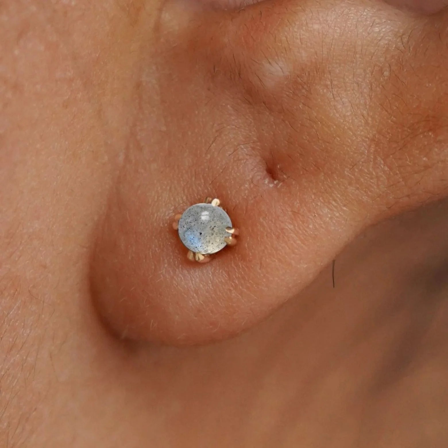 These incredible gemstone earrings are truly unique. Each labradorite stud is like a self-contained galaxy. Wear these stunning 14k solid gold earrings everywhere.