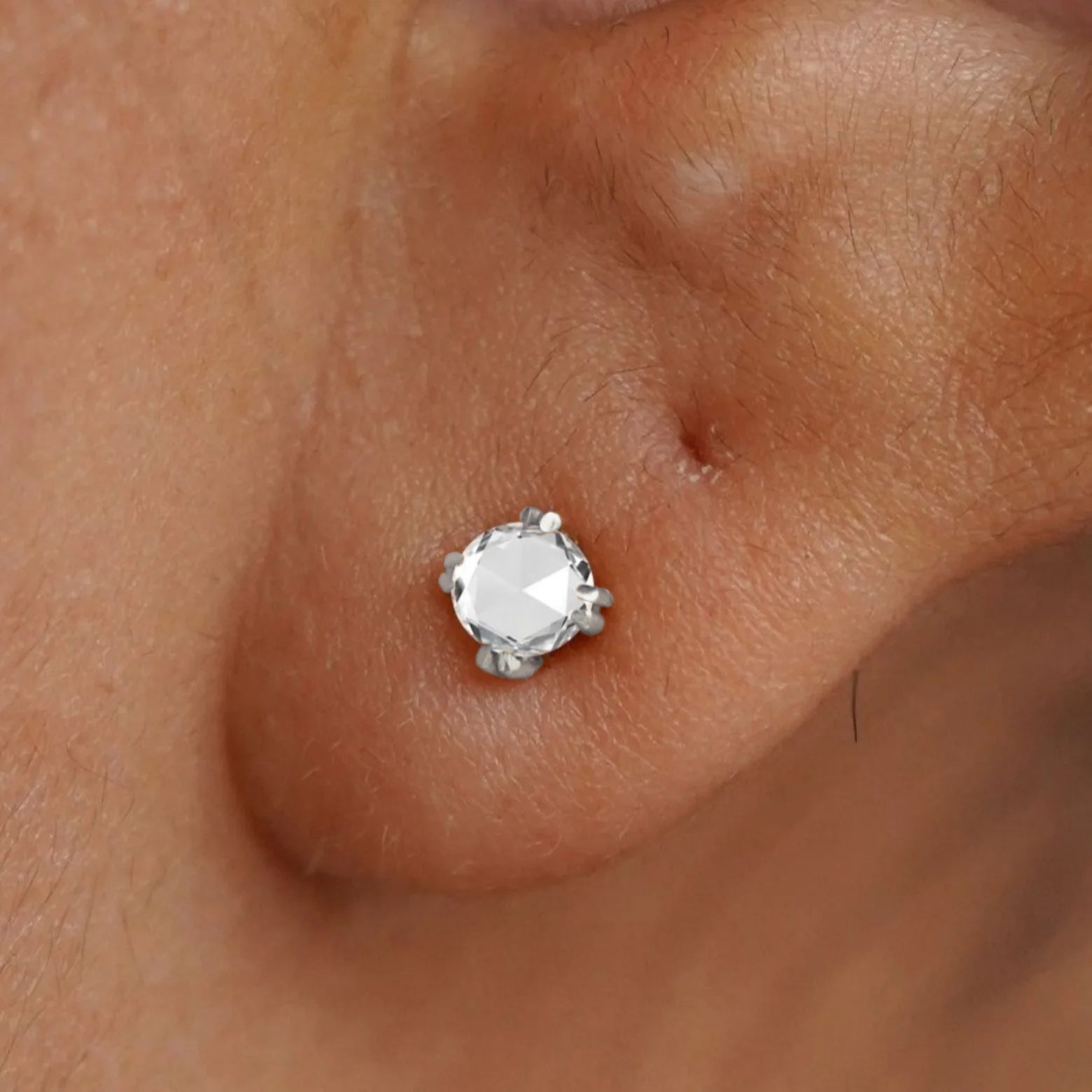 The ethereal look of this rose-cut diamond earring will leave you feeling like royalty. Unlike traditional brilliant-cut diamonds, the rose cut gives a flat back with a faceted top that shows off the stone’s unique look and subtle shine. These 14k gold earrings are the perfect pieces to wear every day.